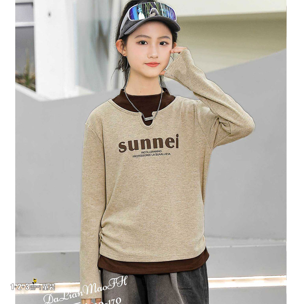 【秒杀价31.9元】(单层加厚)【特价】杏 冬款 女大童241009 FXDD时尚厚打底衫1+2=3童装连锁