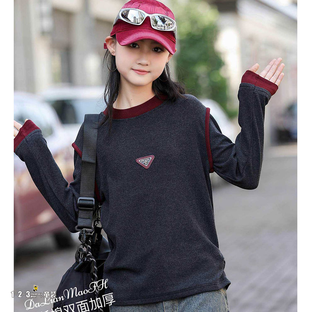 【秒杀价32.9元】(单层加厚)【特价】灰 冬款 女大童241019 FXDD时尚厚打底衫1+2=3童装连锁