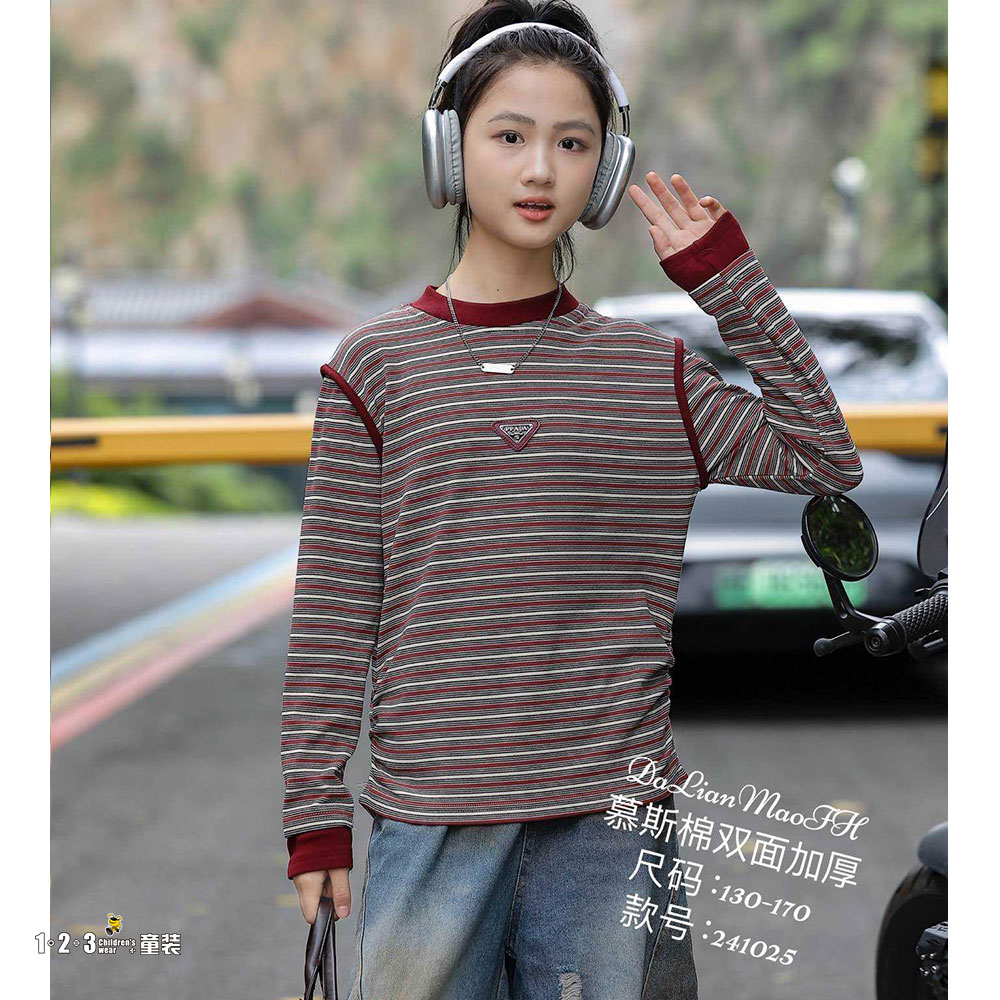 【秒杀价32.9元】(单层加厚)【特价】红 冬款 女大童241025 FXDD时尚厚打底衫1+2=3童装连锁