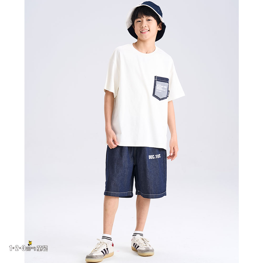 (多多同款)原色牛仔 夏款 男大童0273 DDDD时尚短袖套装1+2=3童装连锁