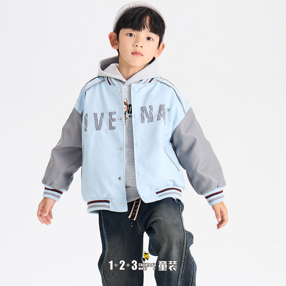 【清仓价44.9元】(多多同款)蓝 秋款 男中童5M00448 DDDD时尚夹层厚外套1+2=3童装连锁