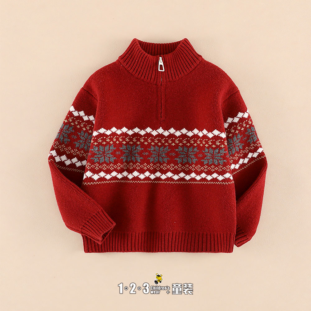 (多多同款)枣红 冬款 男大童5M00546 DDDD时尚厚毛衣1+2=3童装连锁