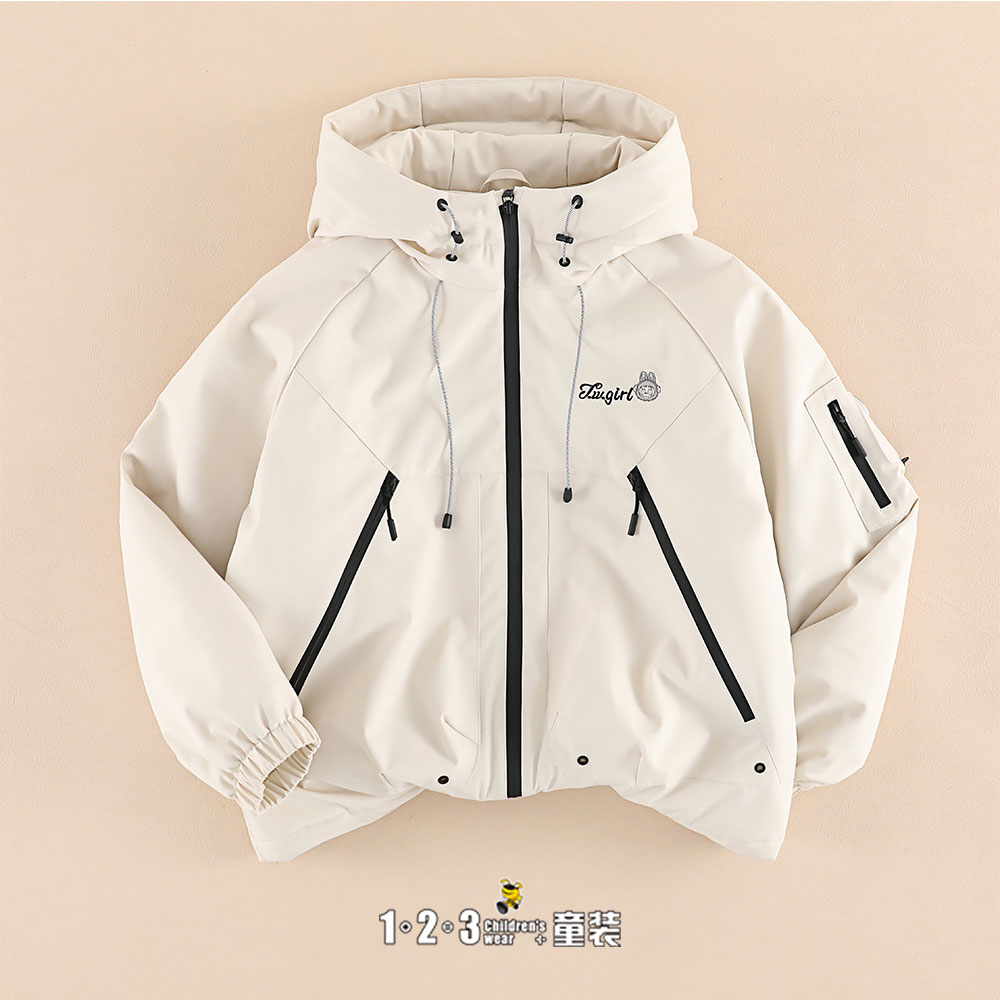 (多多同款)杏 冬款 女大童5F00518 DDDD时尚薄棉衣1+2=3童装连锁