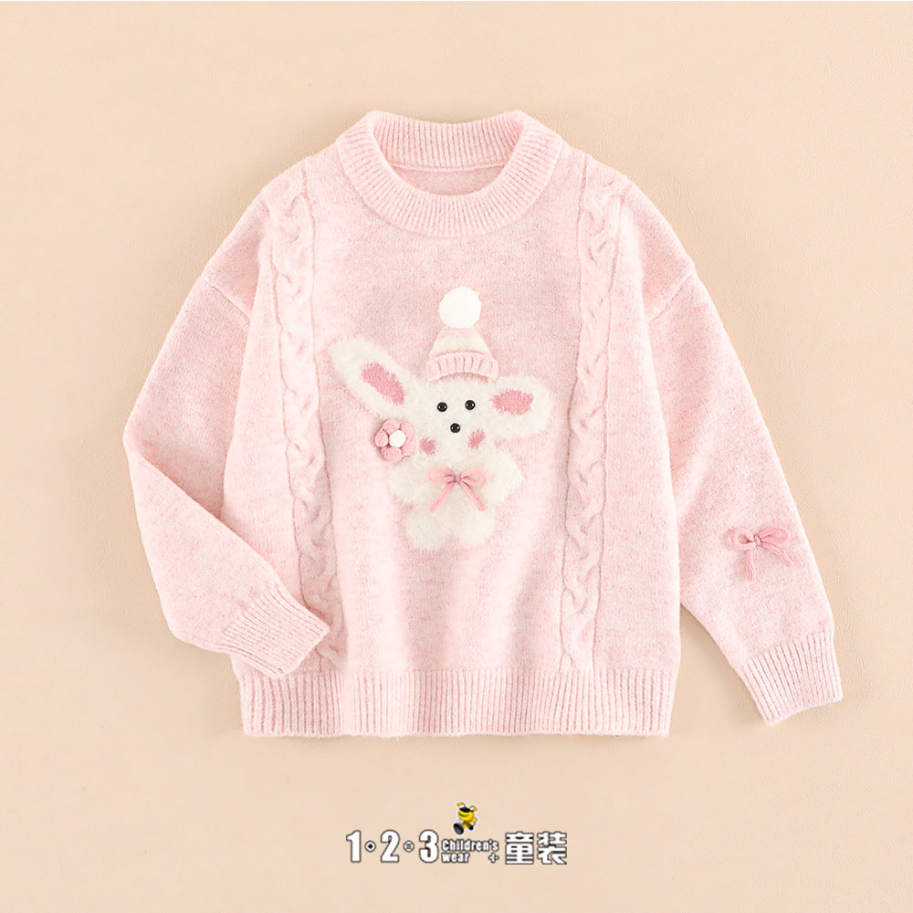 (多多同款)粉 冬款 女小童5F00504 DDDD时尚厚毛衣1+2=3童装连锁
