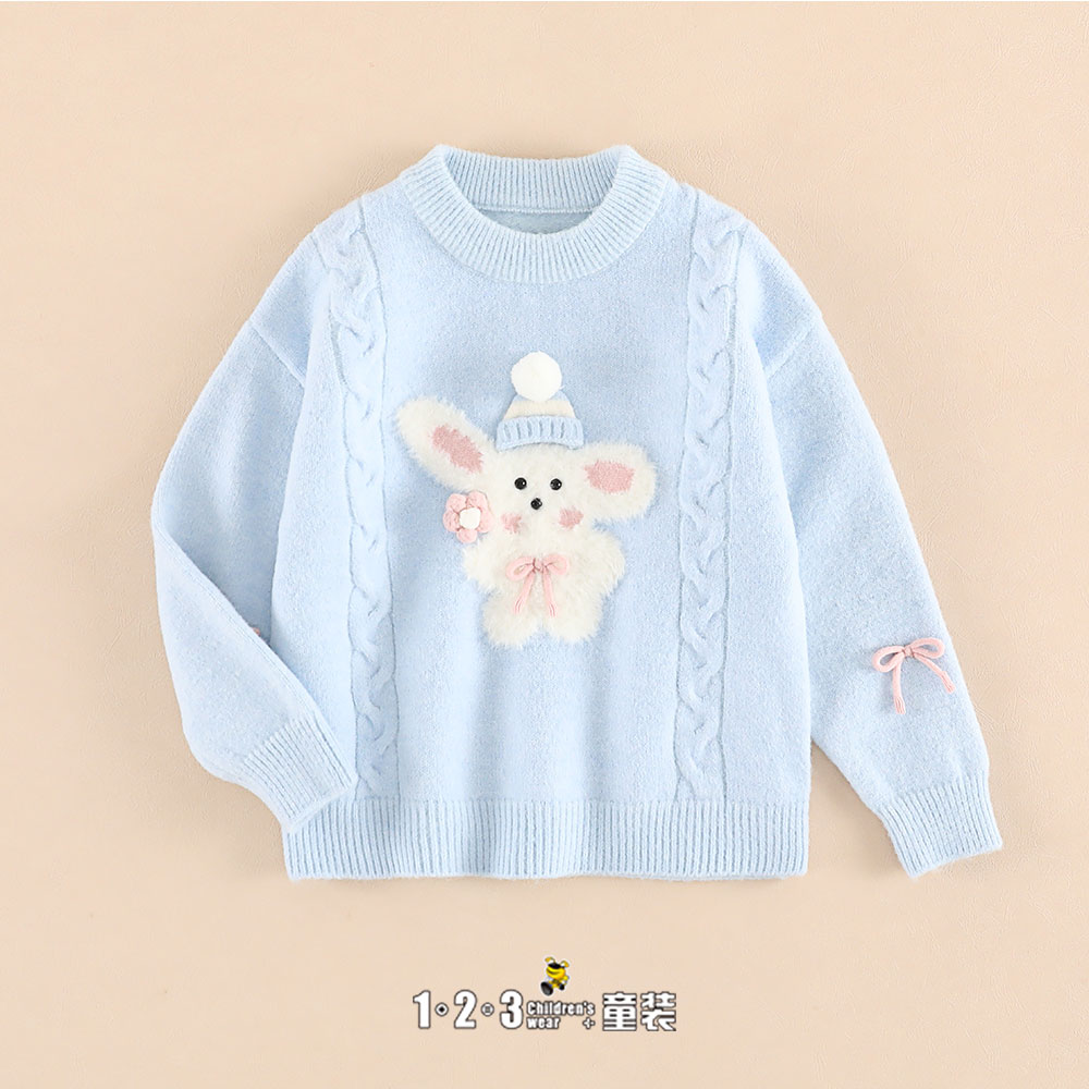 (多多同款)浅蓝 冬款 女小童5F00504 DDDD时尚厚毛衣1+2=3童装连锁