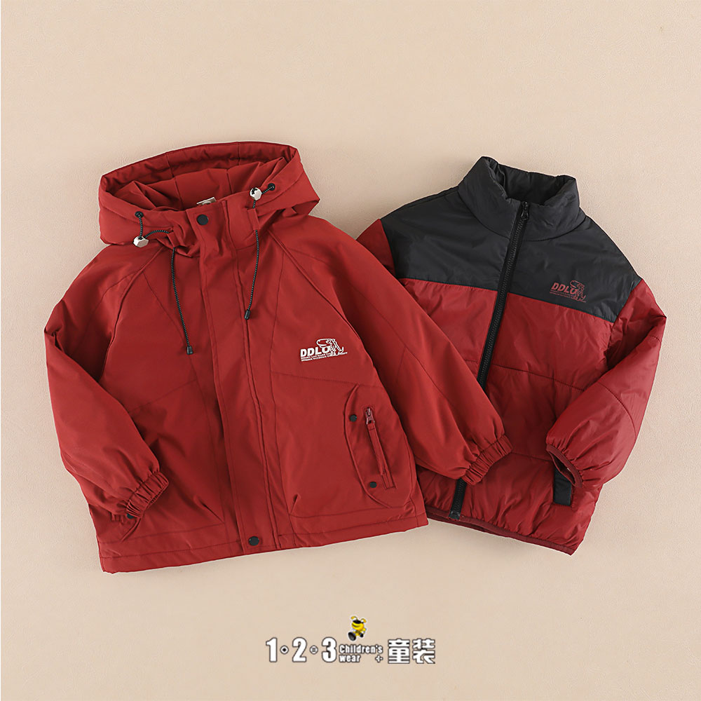 (多多同款)红 冬款 男中童5M00526 DDDD时尚薄棉衣1+2=3童装连锁