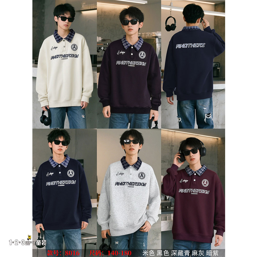 【特价】烟灰 冬款 男大童8016 FXDD时尚厚套头衫123童装连锁