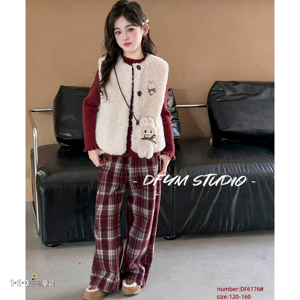 红 冬款 女中童6176 DFDD时尚长袖厚套装123童装连锁