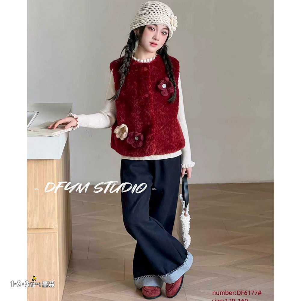红 冬款 女中童6177 DFDD时尚长袖厚套装123童装连锁