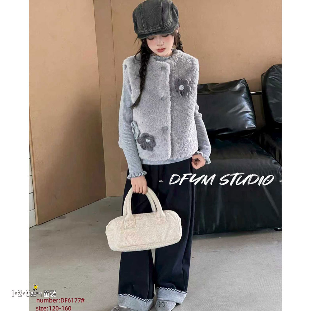 灰 冬款 女中童6177 DFDD时尚长袖厚套装123童装连锁