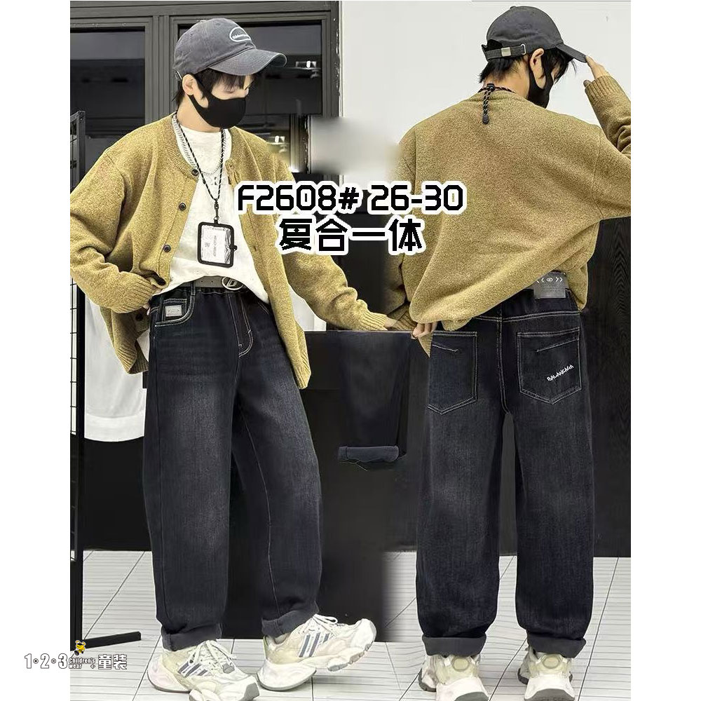 【特价】深蓝 冬款 26-30男大童2608 BBDD时尚牛仔夹裤123童装连锁