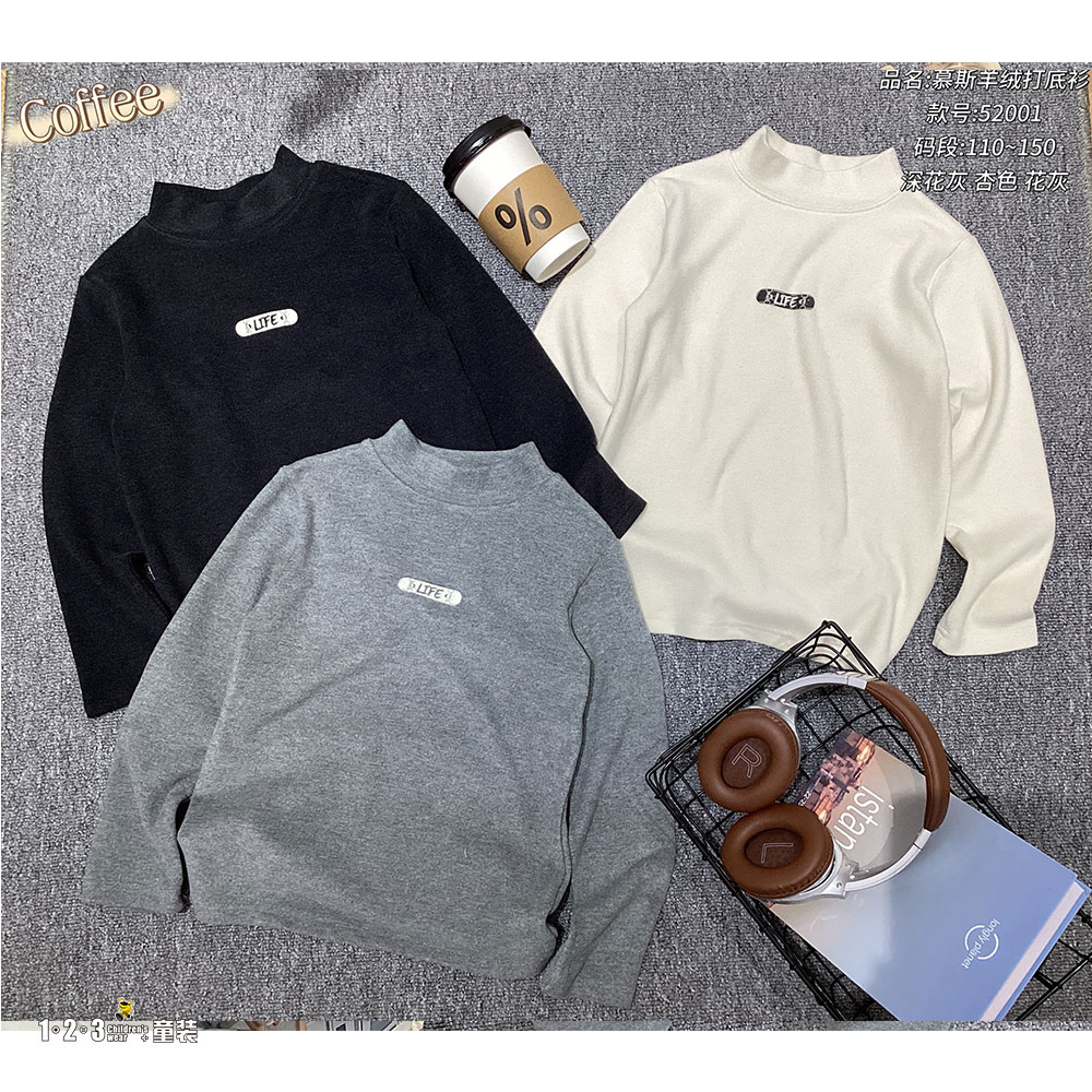 (单层加厚慕斯羊绒)【特价】黑 冬款 男中童52001 QWDD时尚厚打底衫123童装连锁