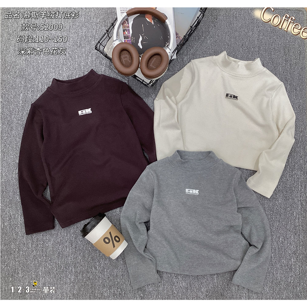 (单层加厚慕斯羊绒)【特价】深灰 冬款 男中童52009 QWDD时尚厚打底衫123童装连锁