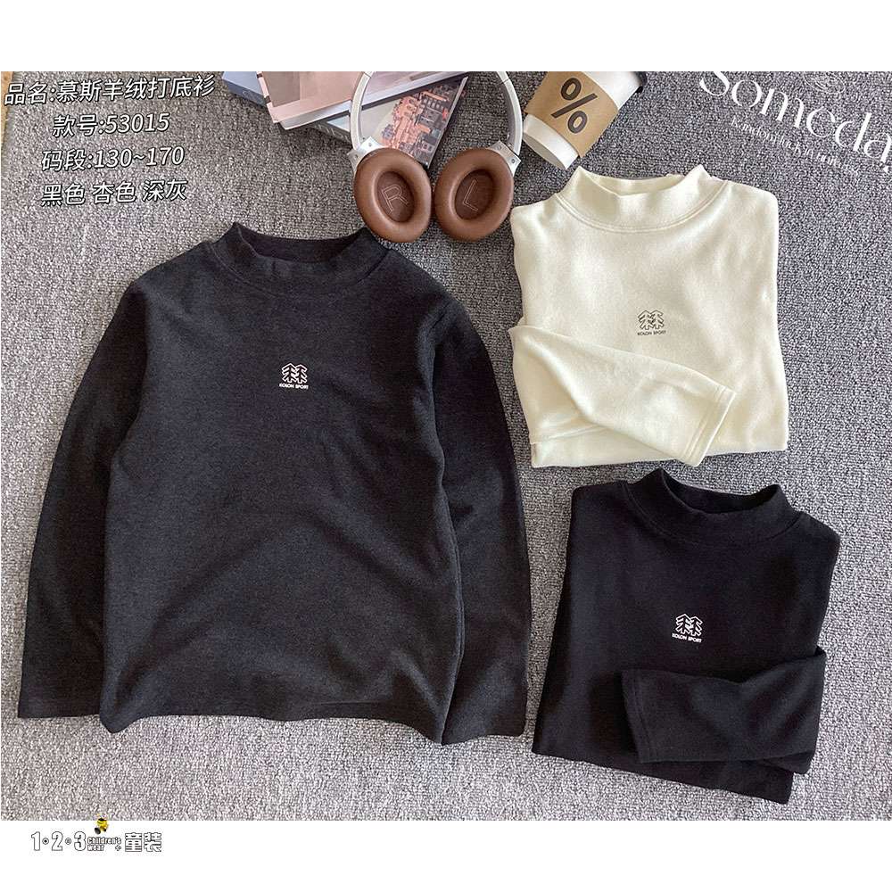 (单层加厚慕斯羊绒)【特价】深灰 冬款 男大童53015 QWDD时尚厚打底衫123童装连锁