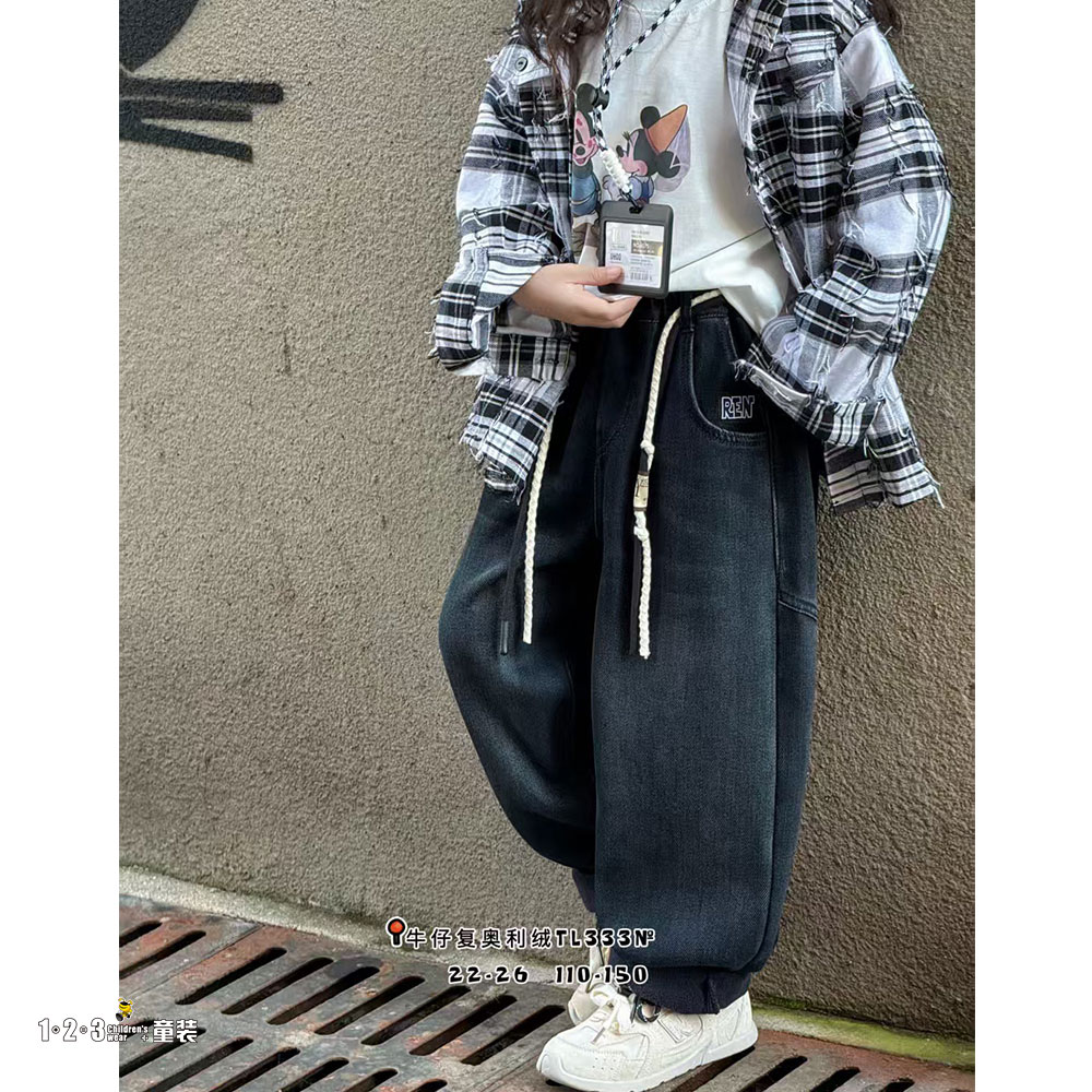 (一体绒)【特价】深蓝 冬款 110-150男中童333 JKDD时尚牛仔夹裤123童装连锁