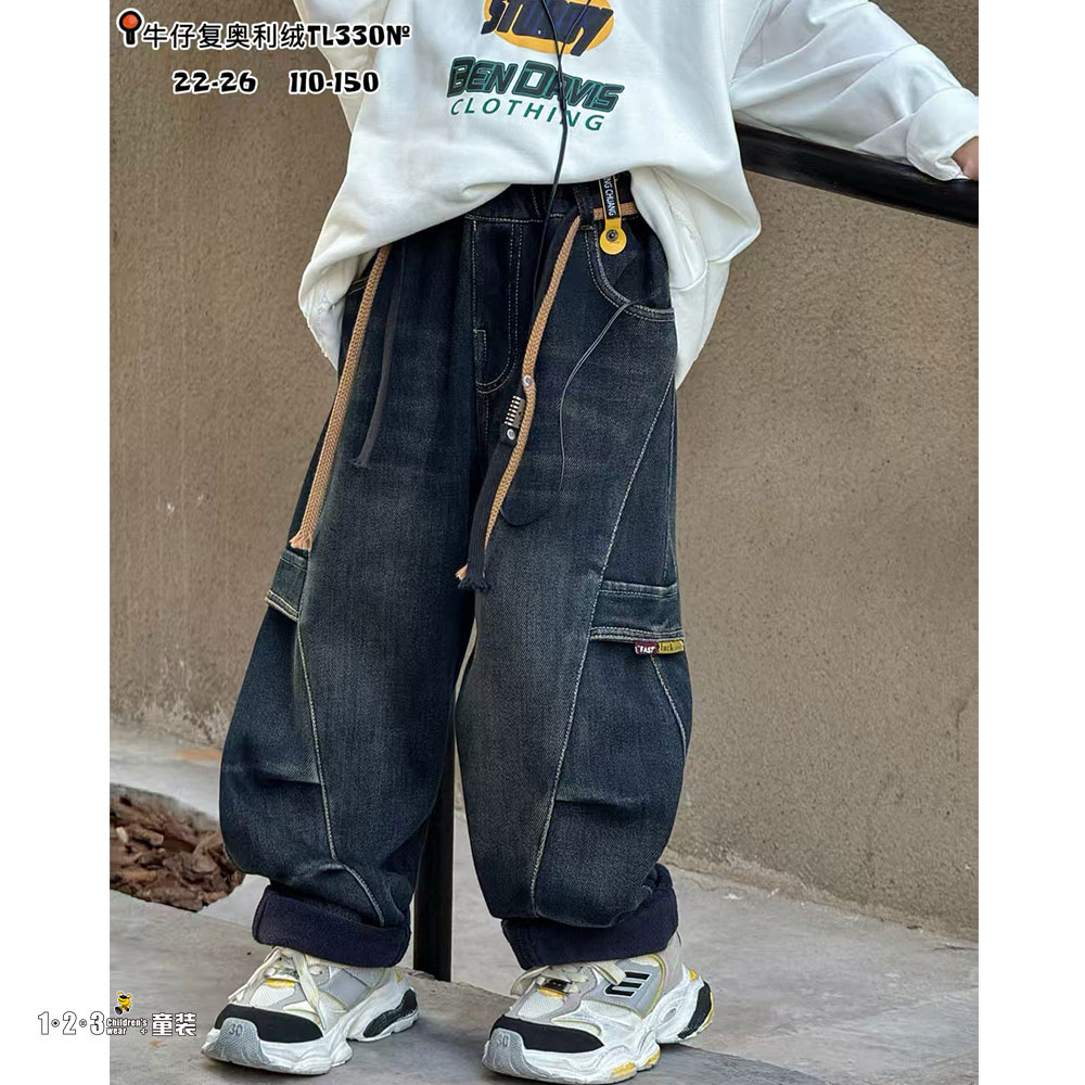 (一体绒)【特价】深蓝 冬款 110-150男中童330 JKDD时尚牛仔夹裤123童装连锁
