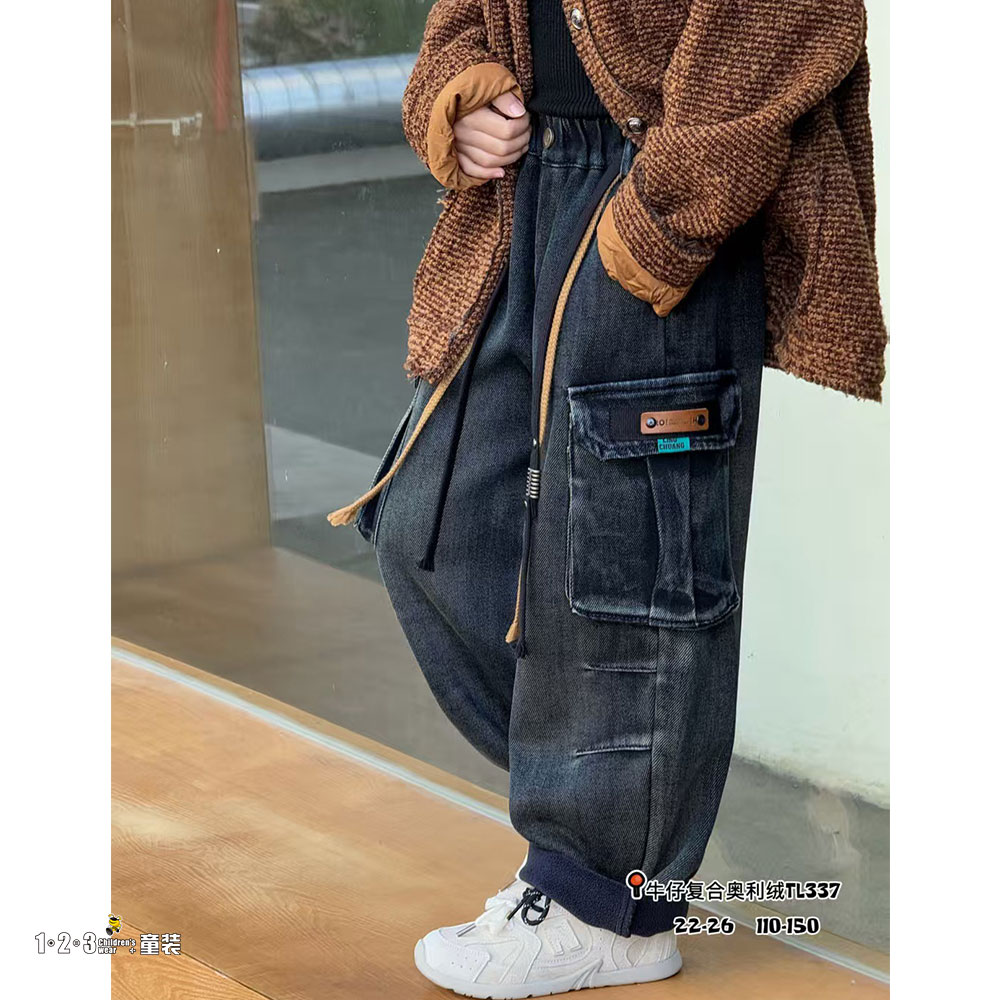 (一体绒)【特价】深蓝 冬款 110-150男中童337 JKDD时尚牛仔夹裤123童装连锁