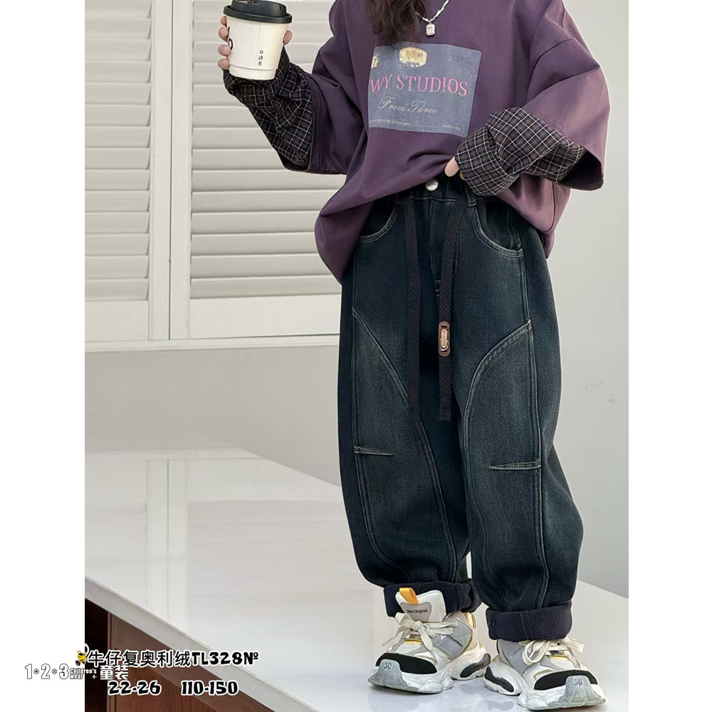 (一体绒)【特价】深蓝 冬款 110-150男中童328 JKDD时尚牛仔夹裤123童装连锁