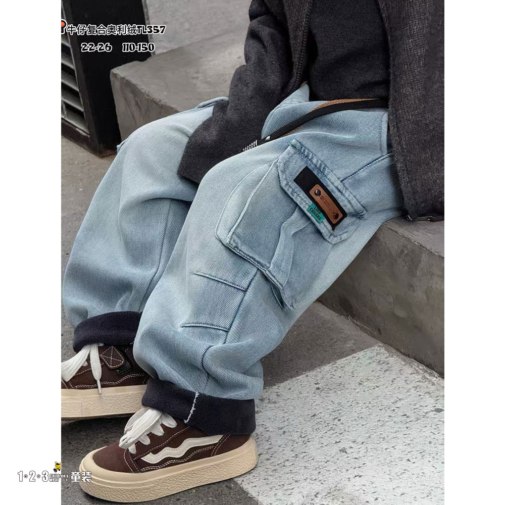 (一体绒)【特价】浅蓝 冬款 110-150男中童357 JKDD时尚牛仔夹裤123童装连锁
