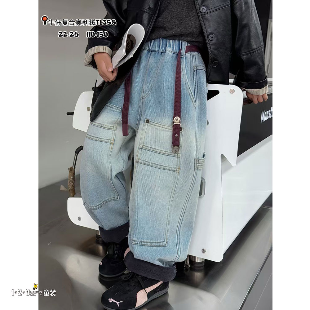 (一体绒)【特价】浅蓝 冬款 110-150男中童358 JKDD时尚牛仔夹裤123童装连锁