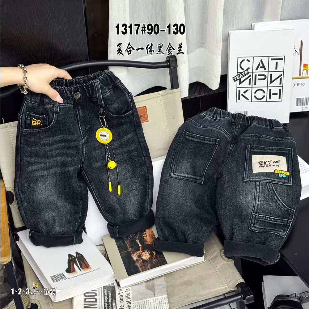 【特价】深蓝 冬款 90-130男小童1317 YXDD时尚牛仔夹裤123童装连锁