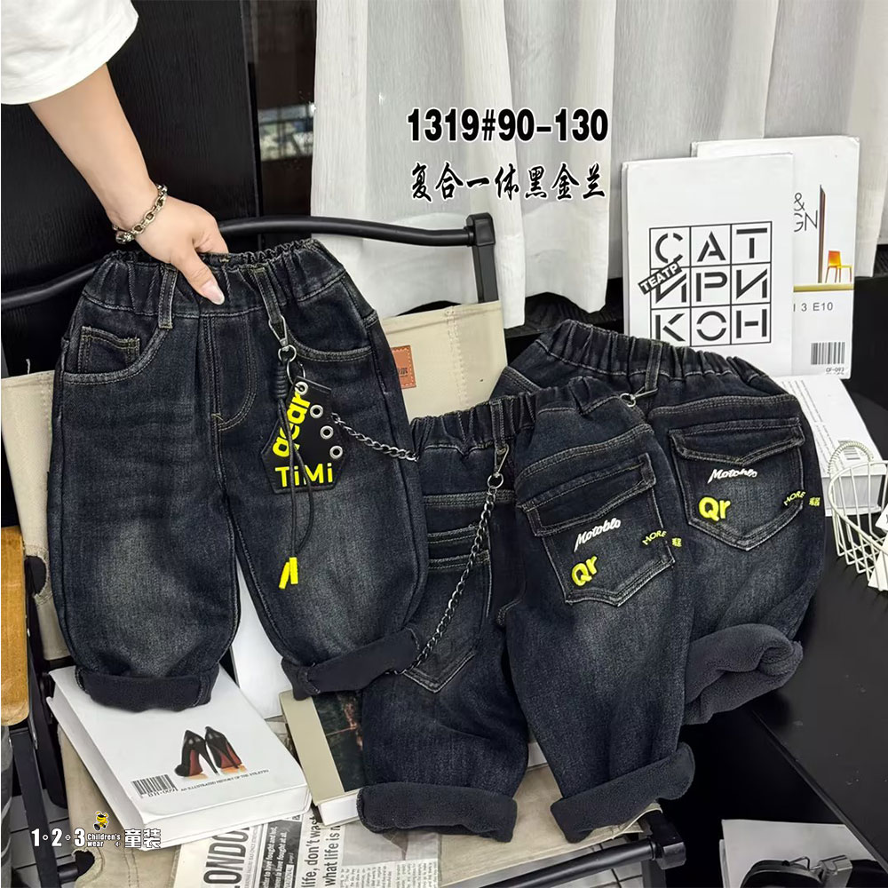 【特价】深蓝 冬款 90-130男小童1319 YXDD时尚牛仔夹裤123童装连锁