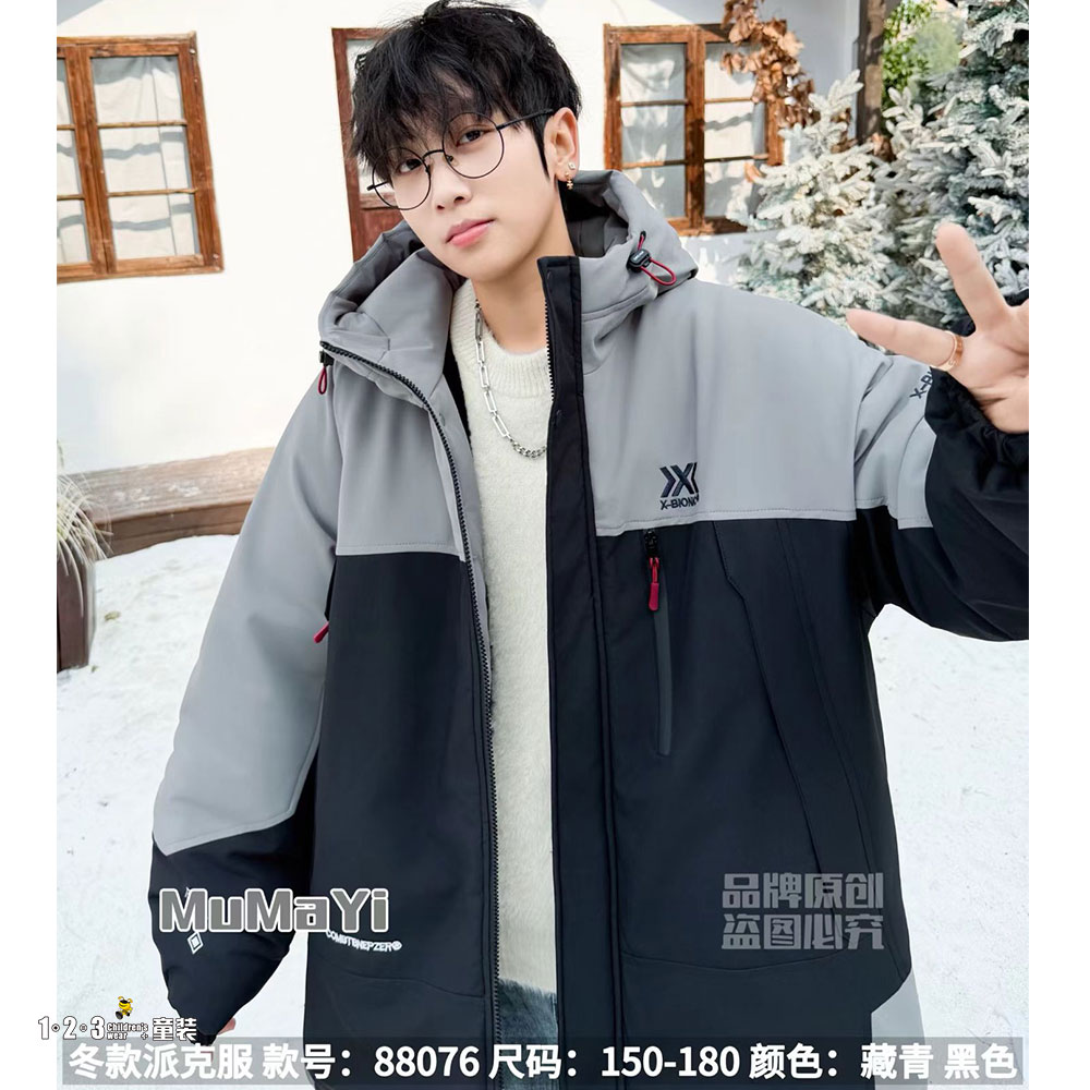 【双十一活动125.9元】藏青 冬款 男大童88076 ABDD时尚厚棉衣123童装连锁