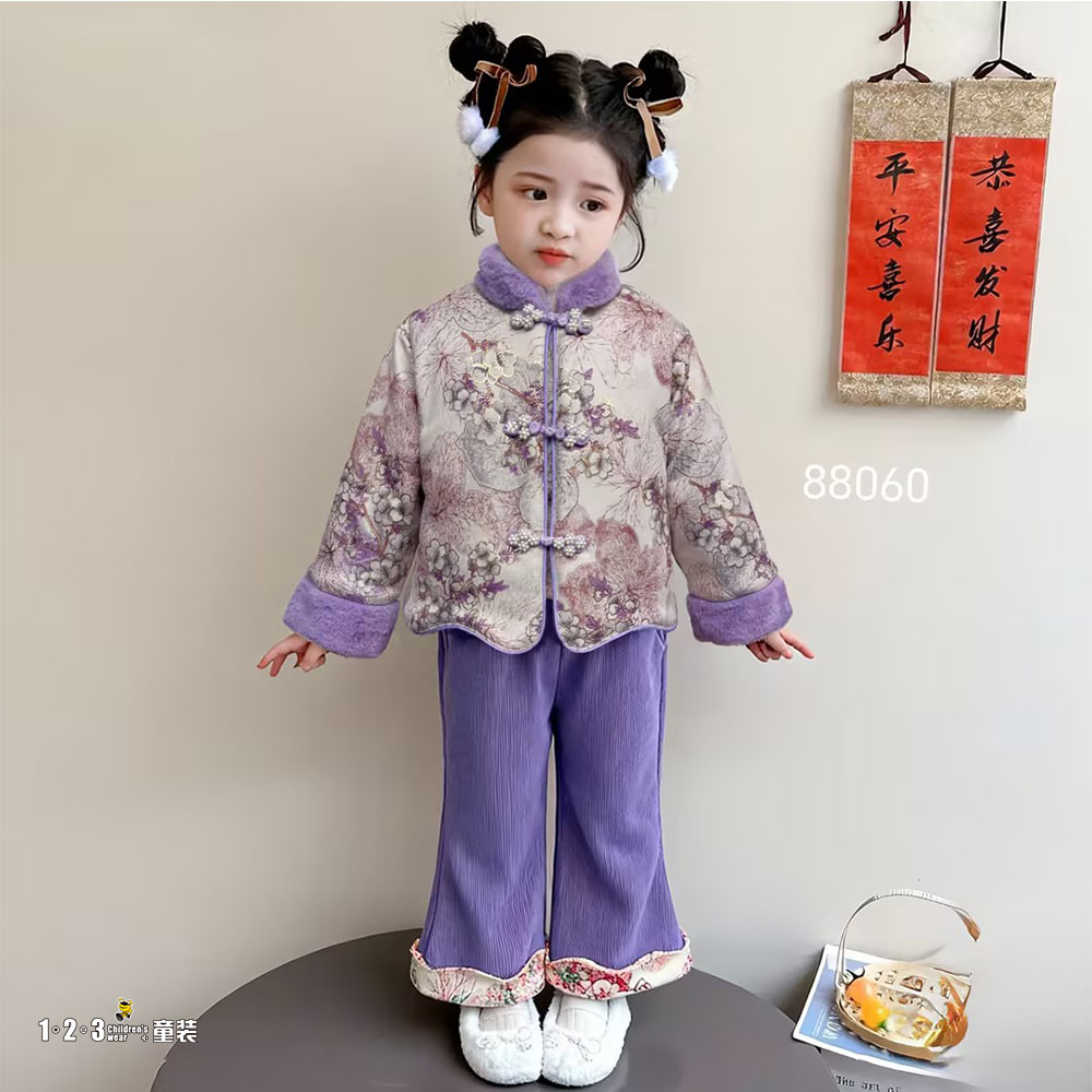【双十一活动70.9元】紫 冬款 女小童88060 LJDD时尚长袖厚套装123童装连锁