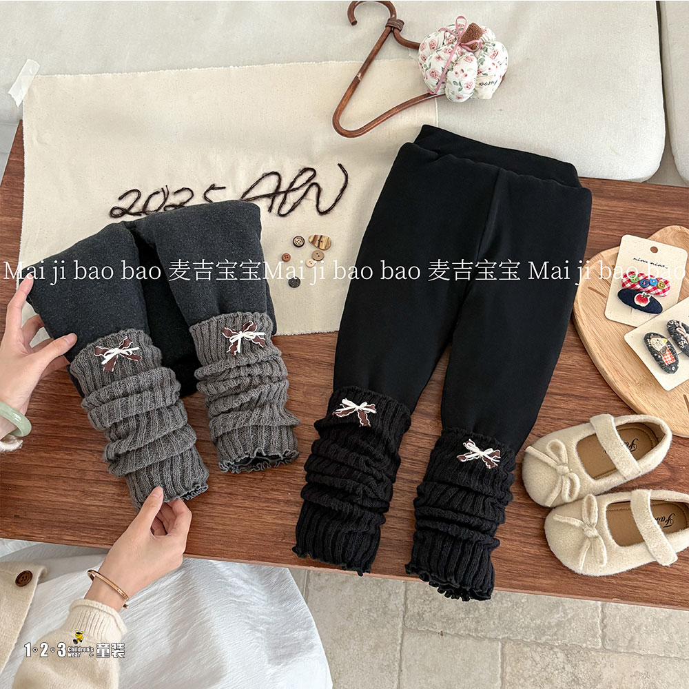 (蚕丝棉)【双十一活动32.9】【特价】黑 冬款 100-140女小童W06 TMDD时尚厚打底裤123童装连锁