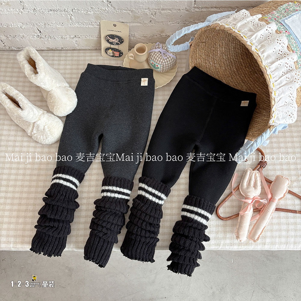 (蚕丝棉)【双十一活动32.9】【特价】黑 冬款 100-140女小童W03 TMDD时尚厚打底裤123童装连锁