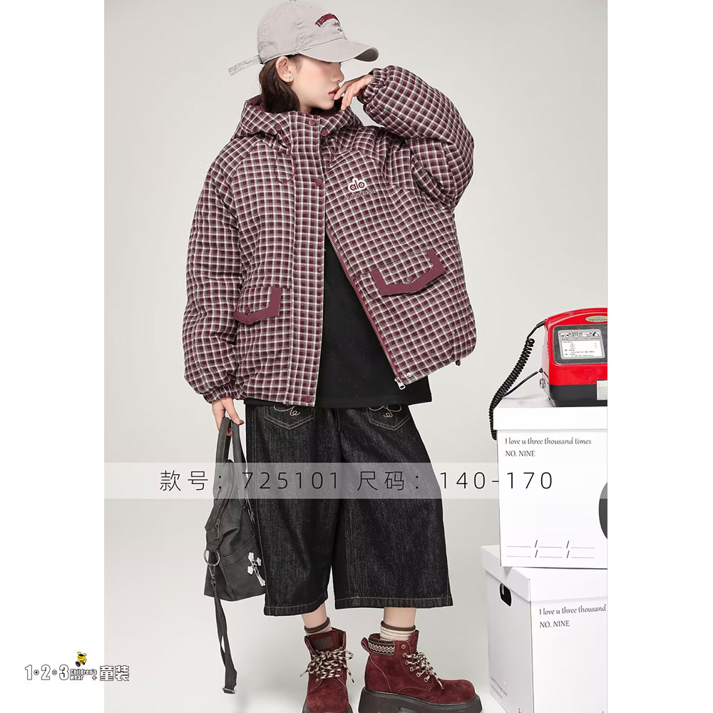 【双十一活动90.9元】红 冬款 女大童725101 YRDD时尚薄棉衣123童装连锁