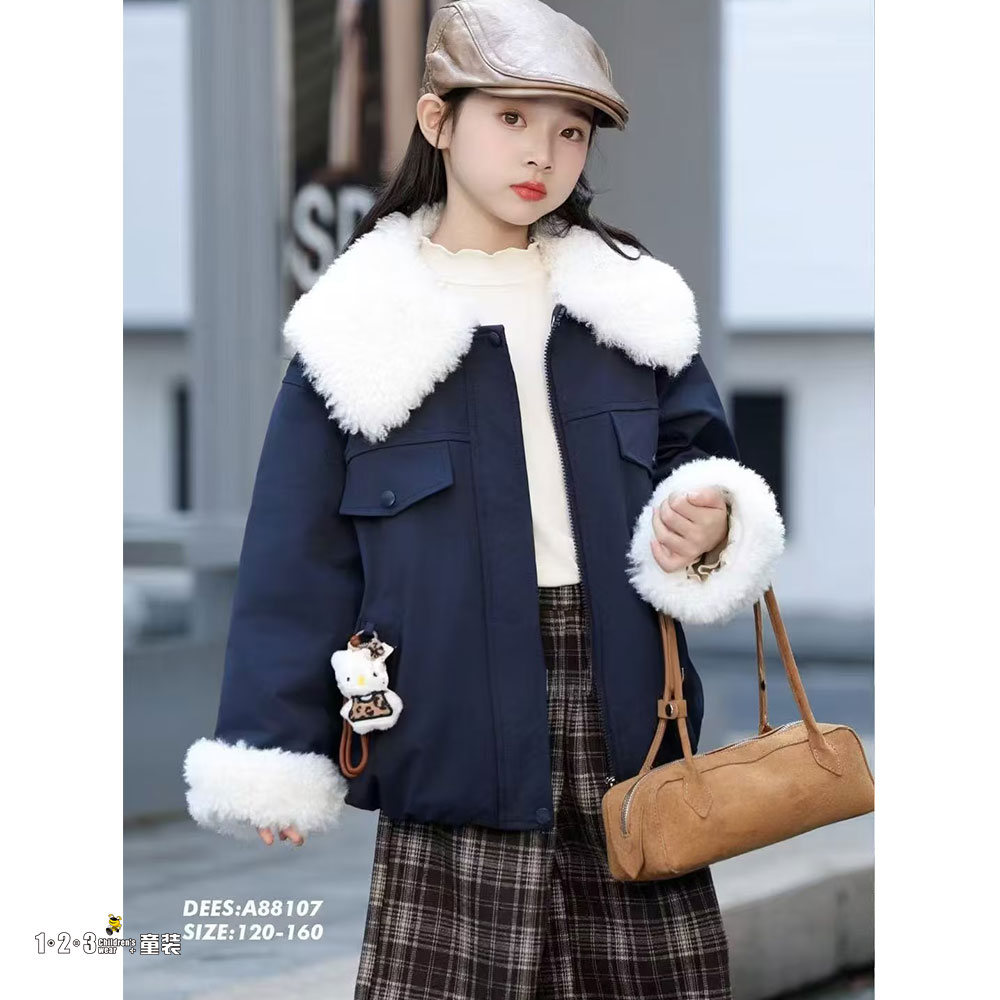 【双十一活动85.9元】藏青 冬款 女中童88107 HYDD时尚薄棉衣123童装连锁