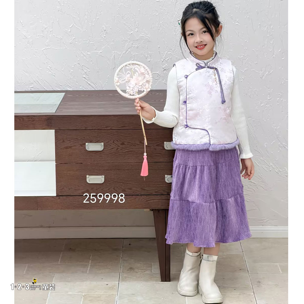 紫 冬款 女中童259998 KJDD时尚长袖厚套装123童装连锁