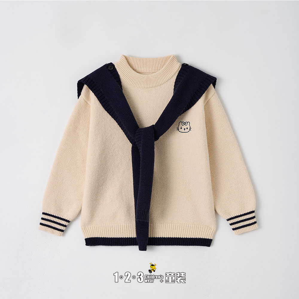(年货款)(多多同款)【特价】米白 冬款 女中童5F00604 DDDD时尚厚毛衣1+2=3童装连锁