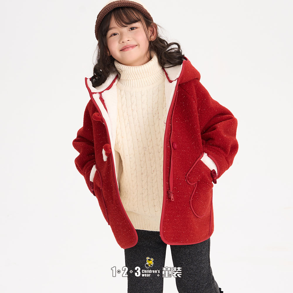 (年货款)(兔毛里)(多多同款)红 冬款 女中童5F20782 DDDD时尚厚棉衣1+2=3童装连锁