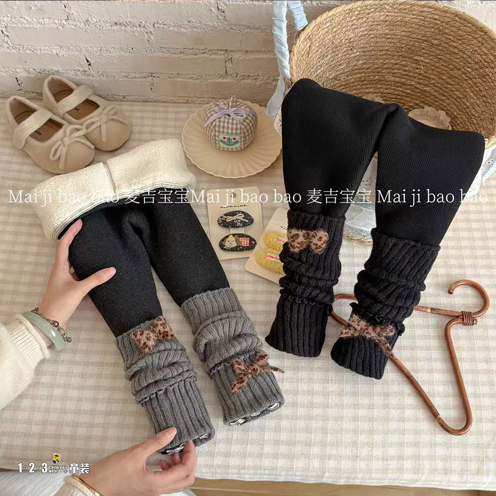 (蚕丝棉)【特价】深灰 冬款 100-140女小童W009 TMDD时尚厚打底裤123童装连锁