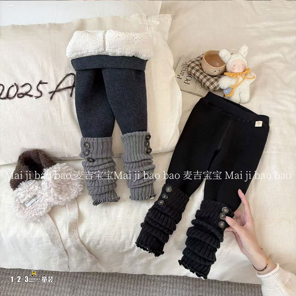 (蚕丝棉)【特价】深灰 冬款 100-140女小童W007 TMDD时尚厚打底裤123童装连锁