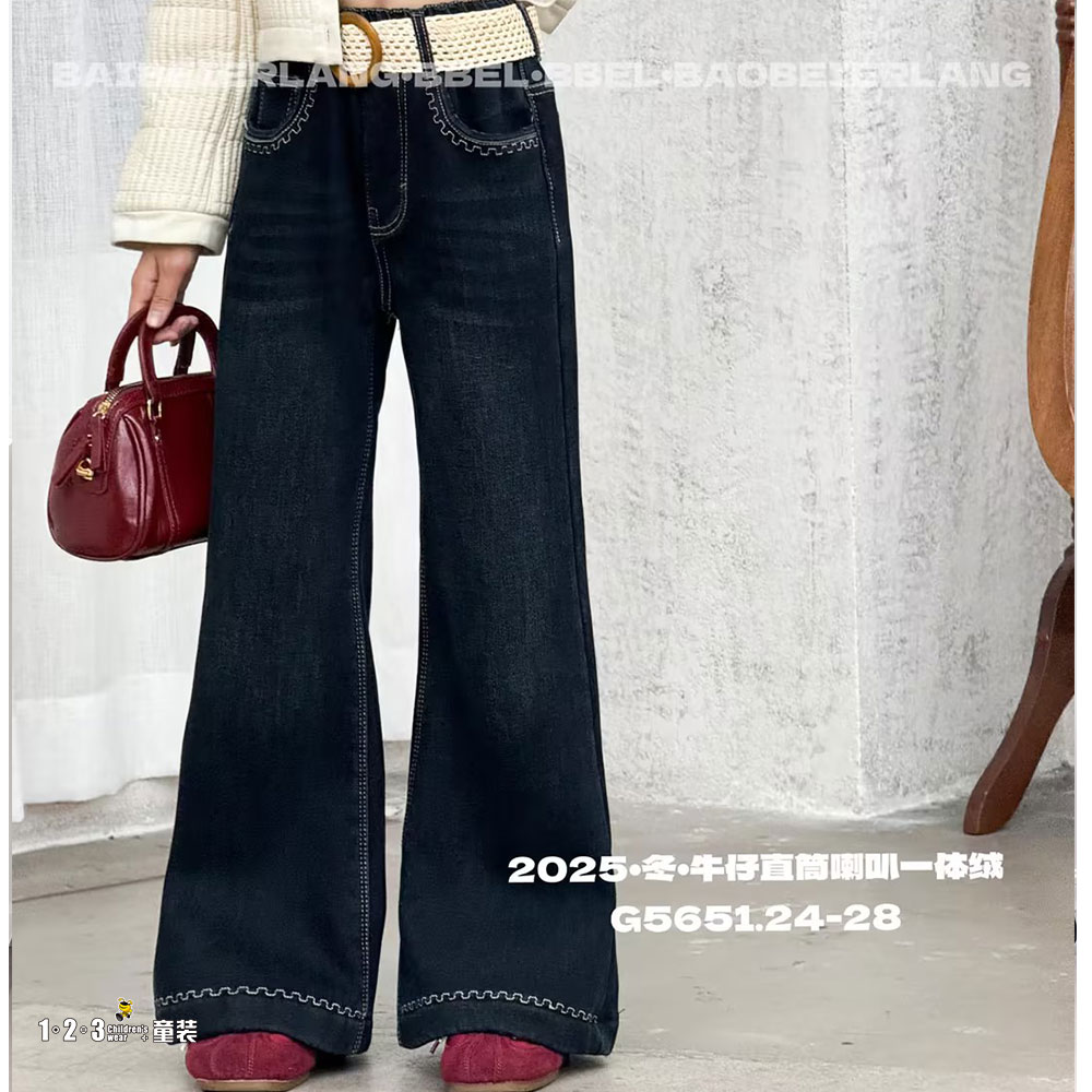 【特价】蓝 冬款 24-28女中童5651 BBDD时尚牛仔棉裤123童装连锁