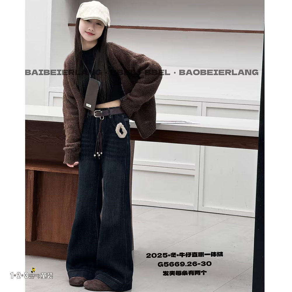 【特价】蓝 冬款 26-30女大童5669 BBDD时尚牛仔棉裤123童装连锁