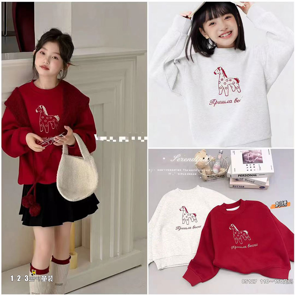 【特价】烟灰 冬款 女中童85127 TMDD时尚厚套头衫123童装连锁