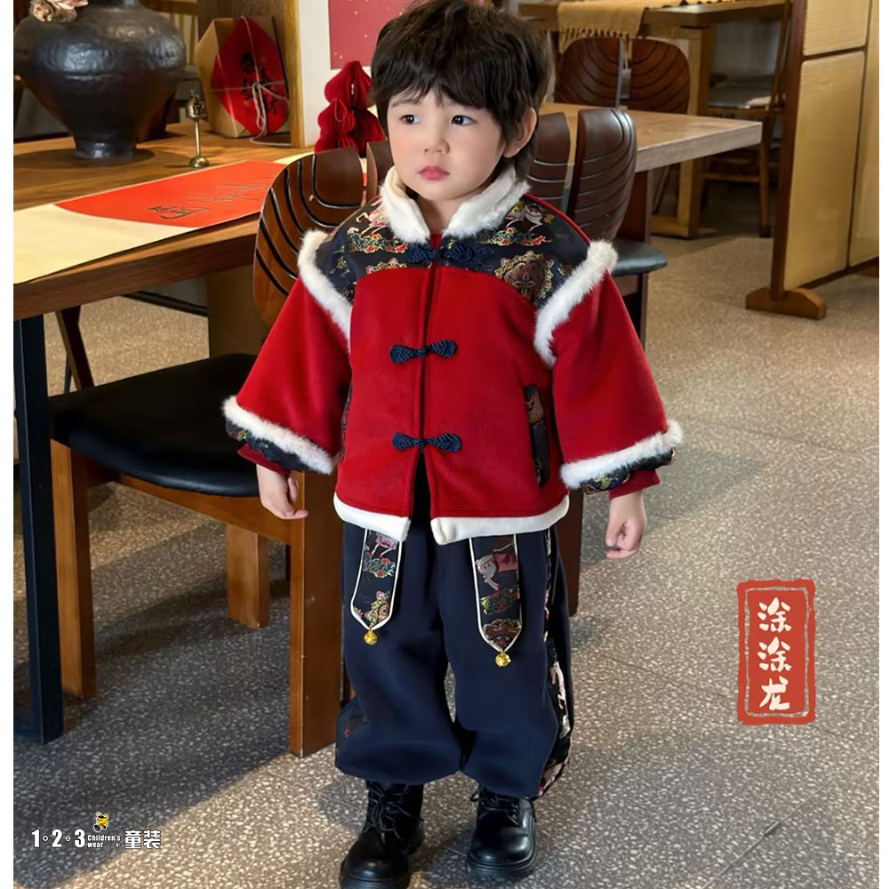 (年货)红 冬款 男小童N07 TTDD时尚长袖套装123童装连锁
