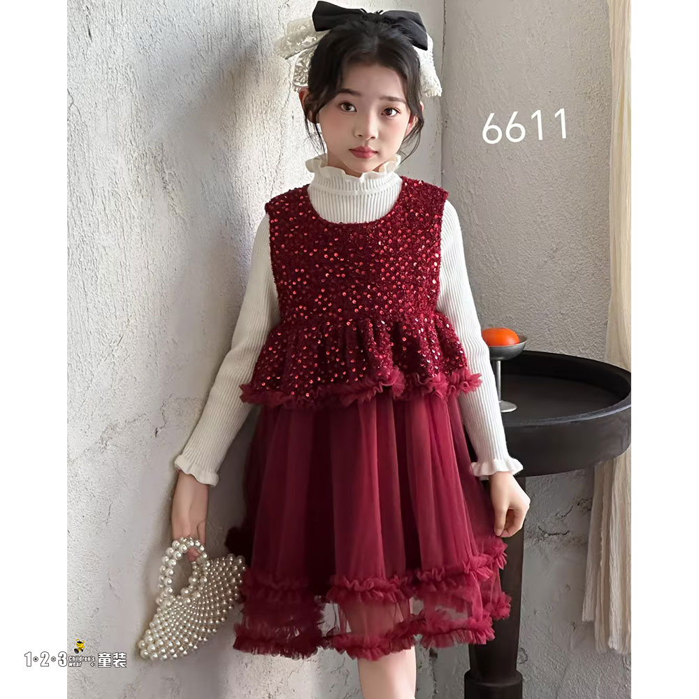 红 冬款 女中童6611 MSDD时尚长袖厚套装123童装连锁