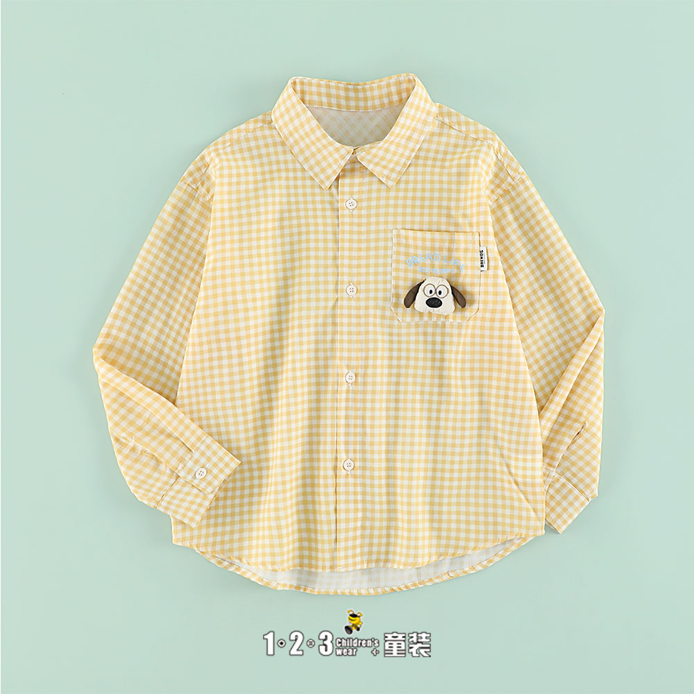 《复古》(多多同款)黄 春款 男小童6M20214 DDDD时尚长袖衬衫1+2=3童装连锁