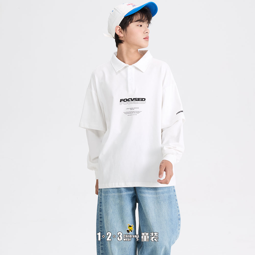 《复古》(多多同款)【特价】白 春款 男大童6B8019 DDDD时尚薄打底衫1+2=3童装连锁