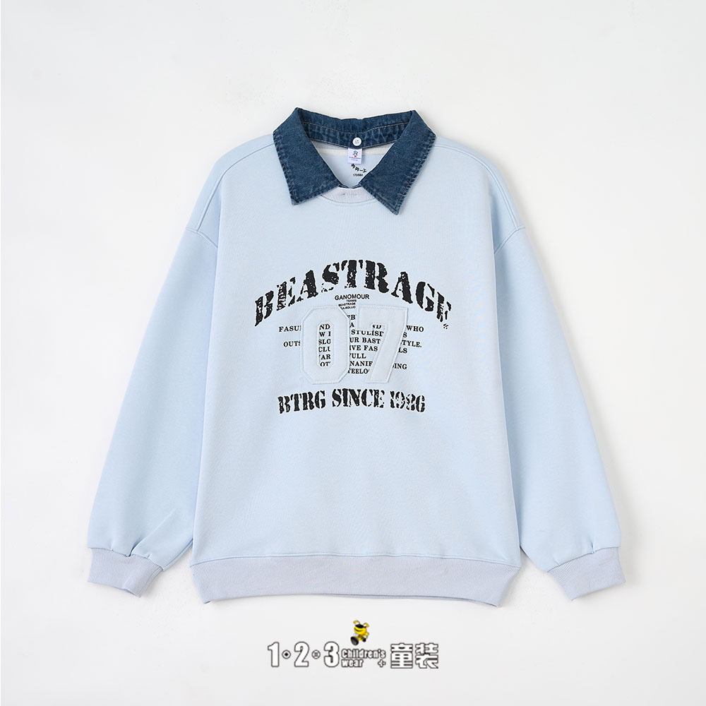 《复古》(多多同款)【特价】浅蓝 春款 男大童6B8016 DDDD时尚薄套头衫1+2=3童装连锁