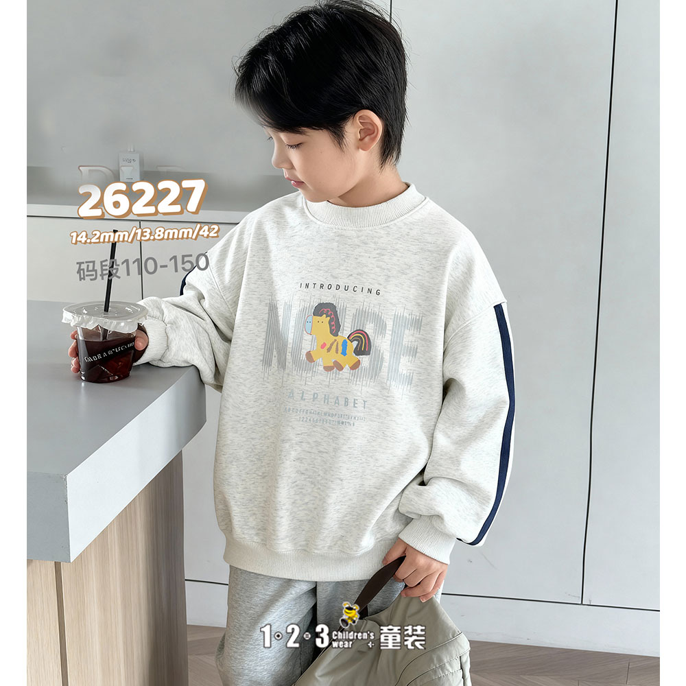 《休闲》【特价】烟灰 春款 男中童CK26227 BLDD时尚薄套头衫1+2=3童装连锁