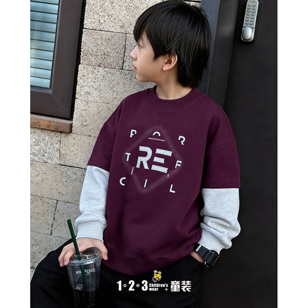 《复古》【特价】紫 春款 男中童CK26205 BLDD时尚薄套头衫1+2=3童装连锁