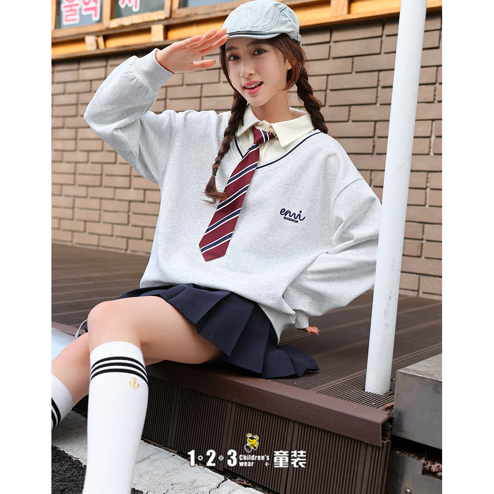 《学院》【特价】烟灰 春款 女大童CK82627 KRDD时尚薄套头衫1+2=3童装连锁