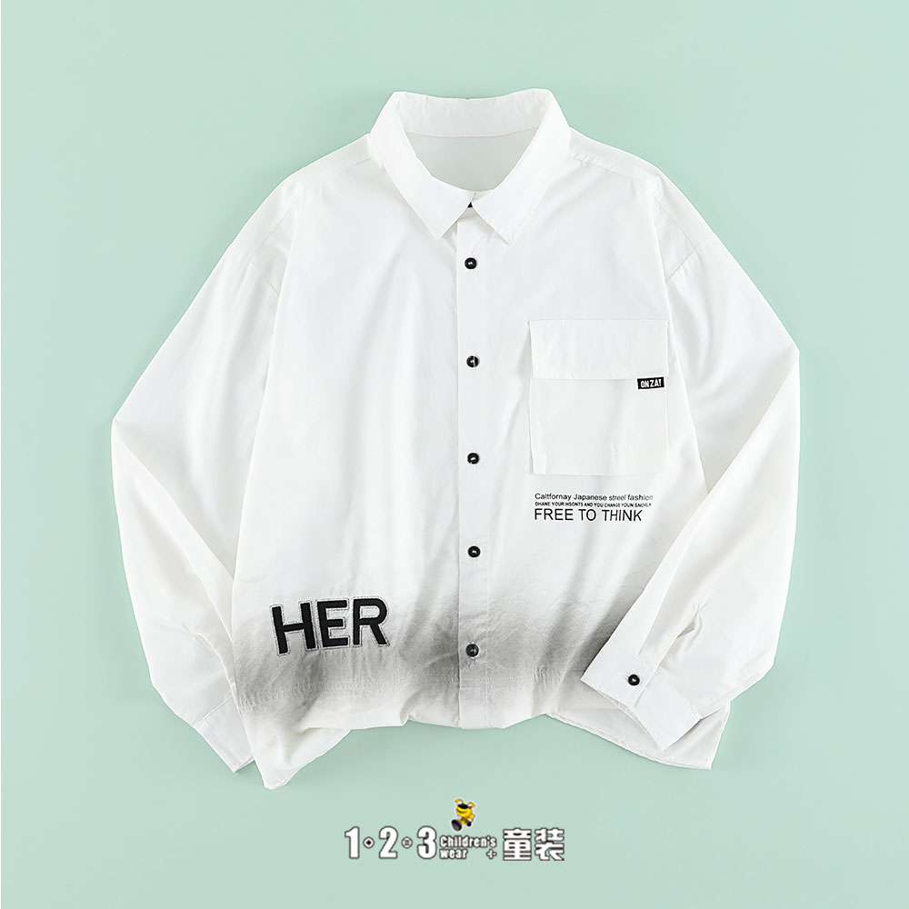 《潮酷》(多多同款)白 春款 男大童6M20300 DDDD时尚长袖衬衫1+2=3童装连锁