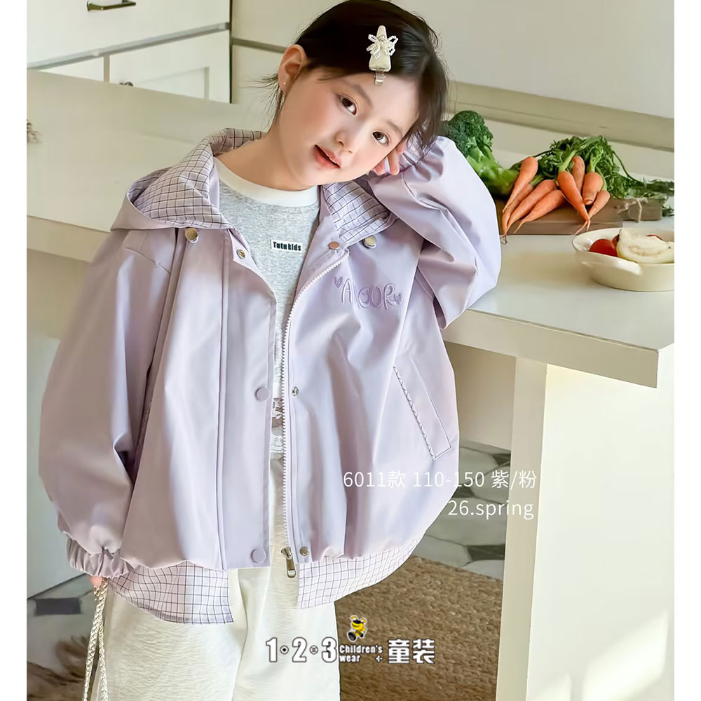 《学院》紫 春款 女中童CK26011 HLDD时尚单层外套1+2=3童装连锁